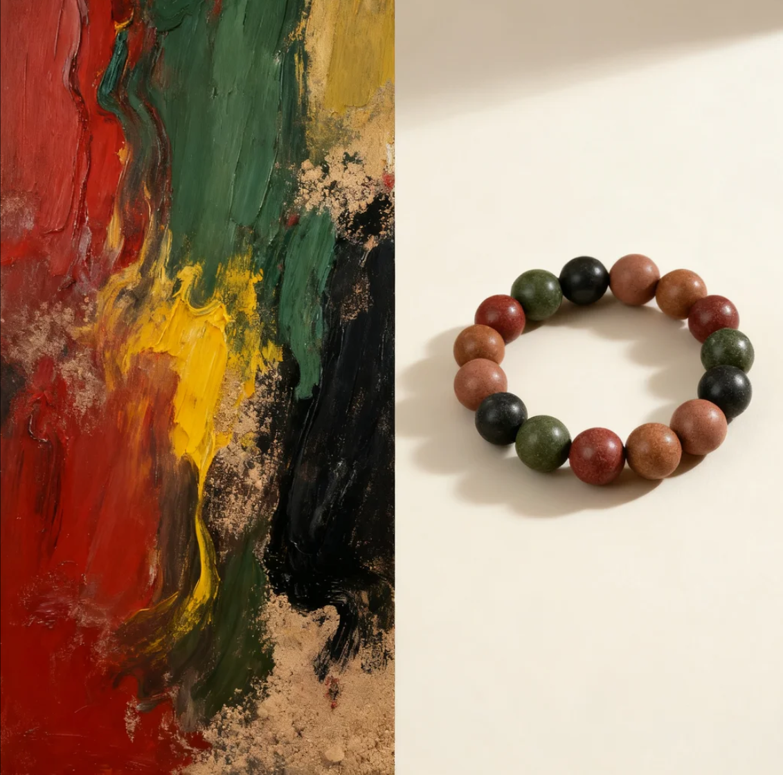 所有芳香成分均為植物基,用於傳統香氛/儀式用途。珠子手工串製,採用耐用的鬆緊帶,並配有金色隔片和小巧的吉祥護身符。