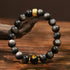 This bracelet combines Silver Obsidian and Black Agate, forming a balanced field of protection and inner strength.